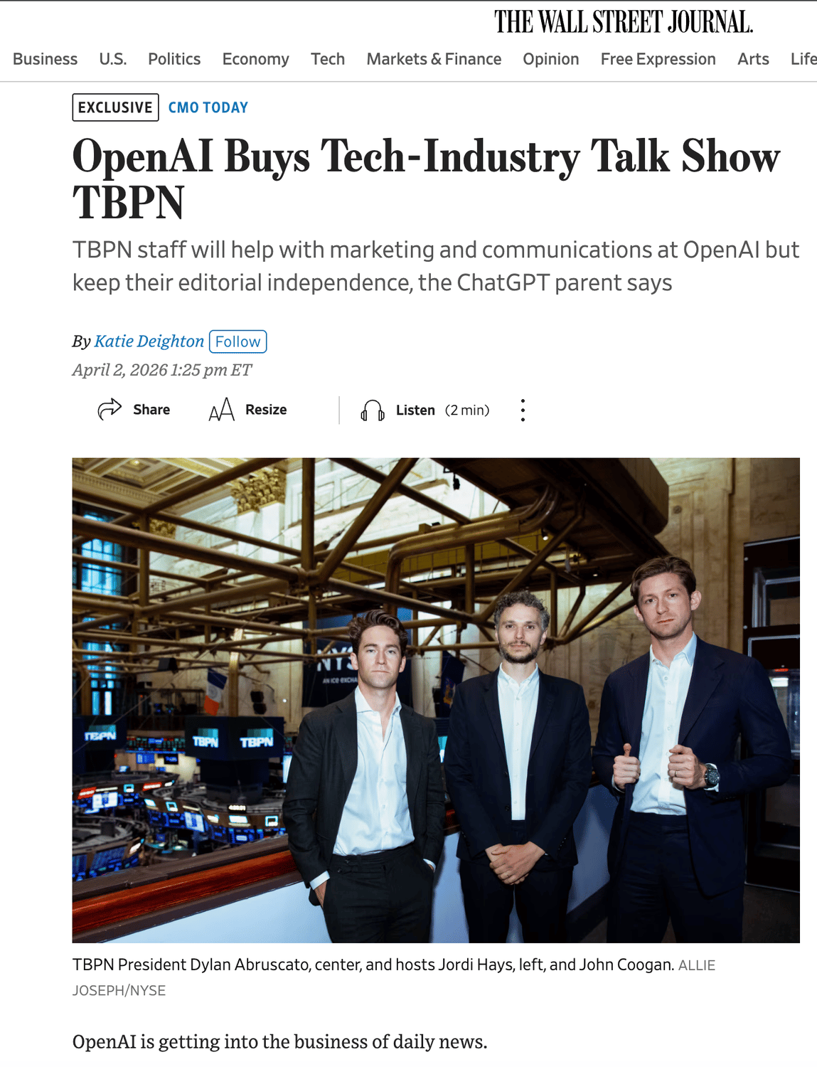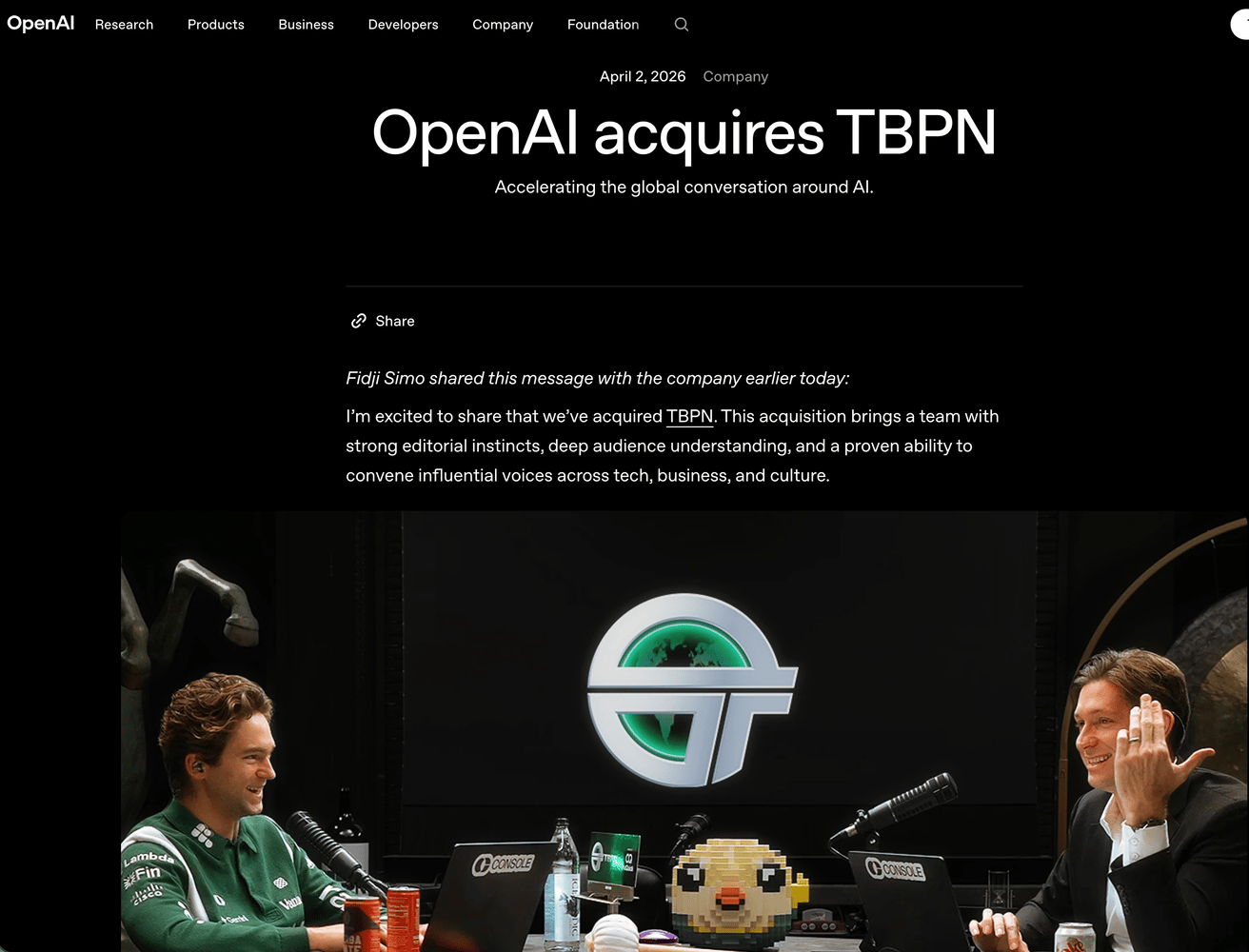 The next day, 04.02.26, OpenAI announced its acquisition of TBPN.