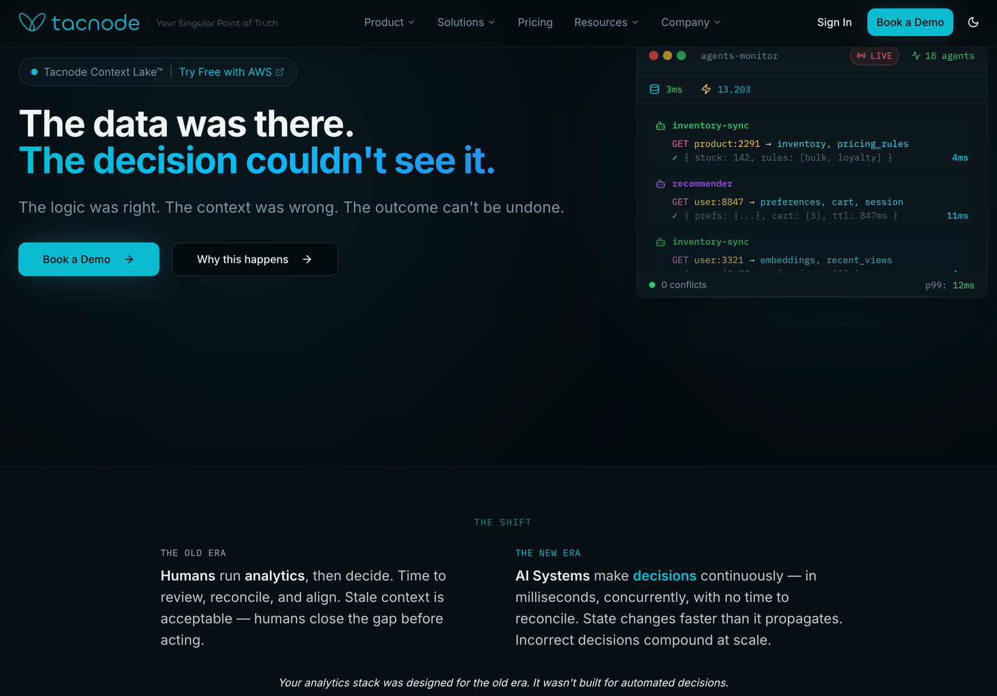 One of those infrastructure companies stopped me cold at Fintech Meetup: Tacnode, a context lake company with a lights out vision: