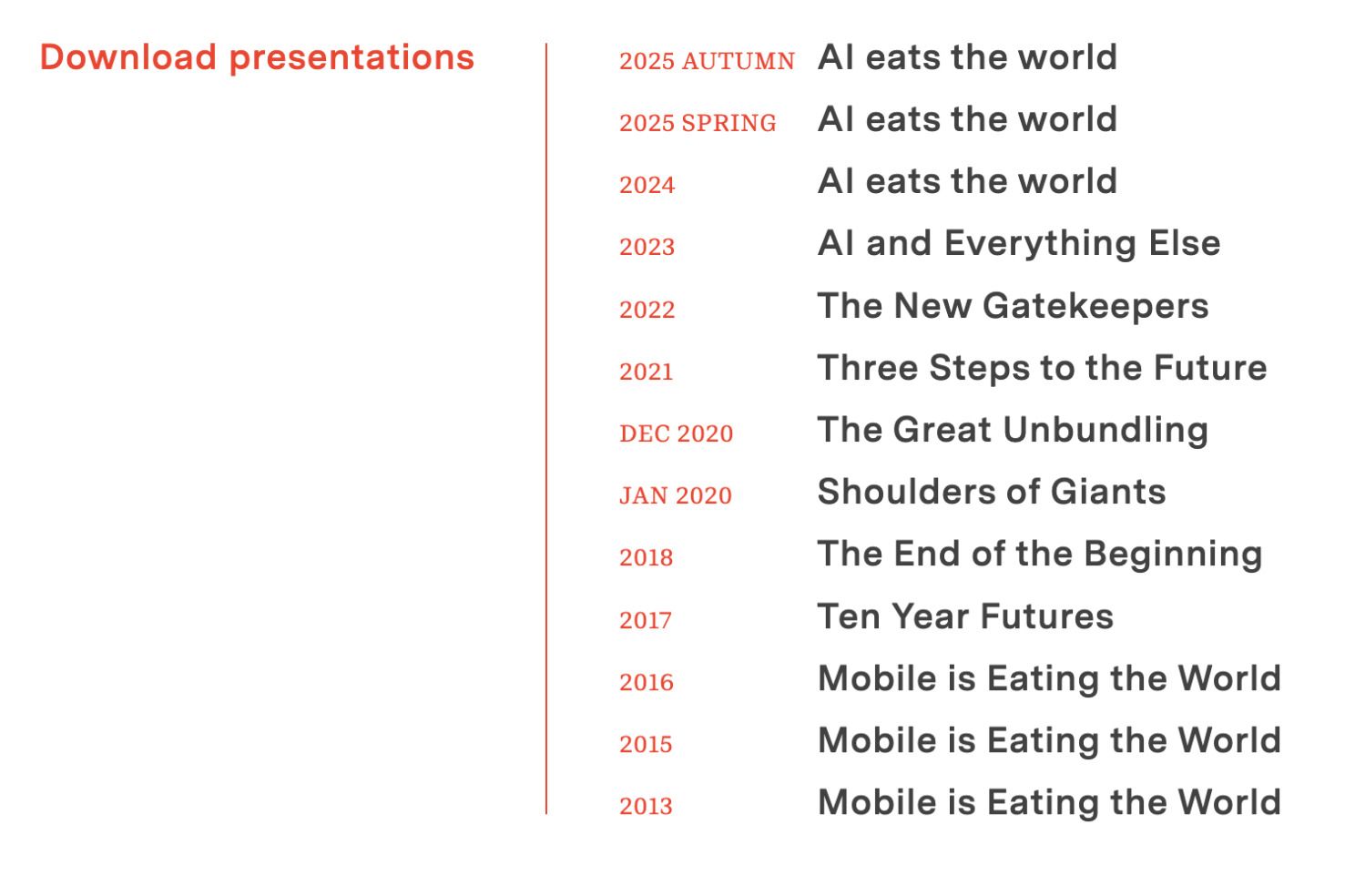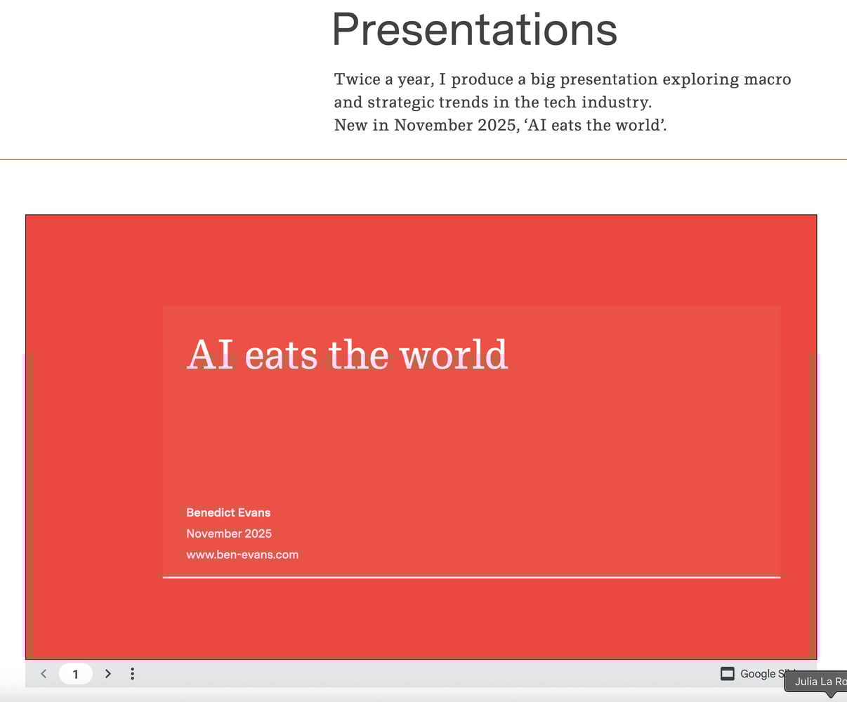 Twice a year, he publishes “a big presentation exploring macro and strategic trends in the tech industry” which personifies the term “brain food” (s/o Shane Parrish).
