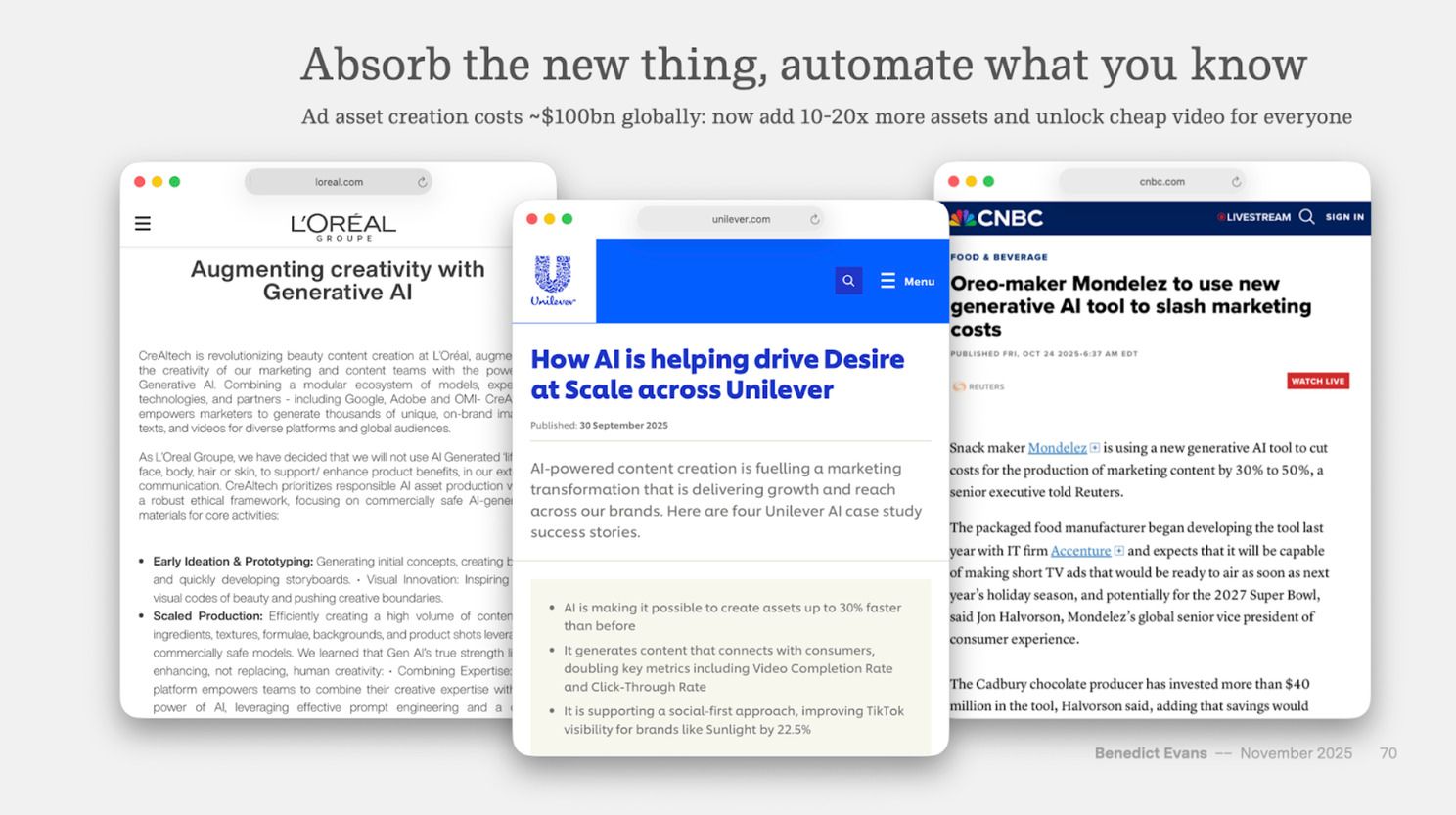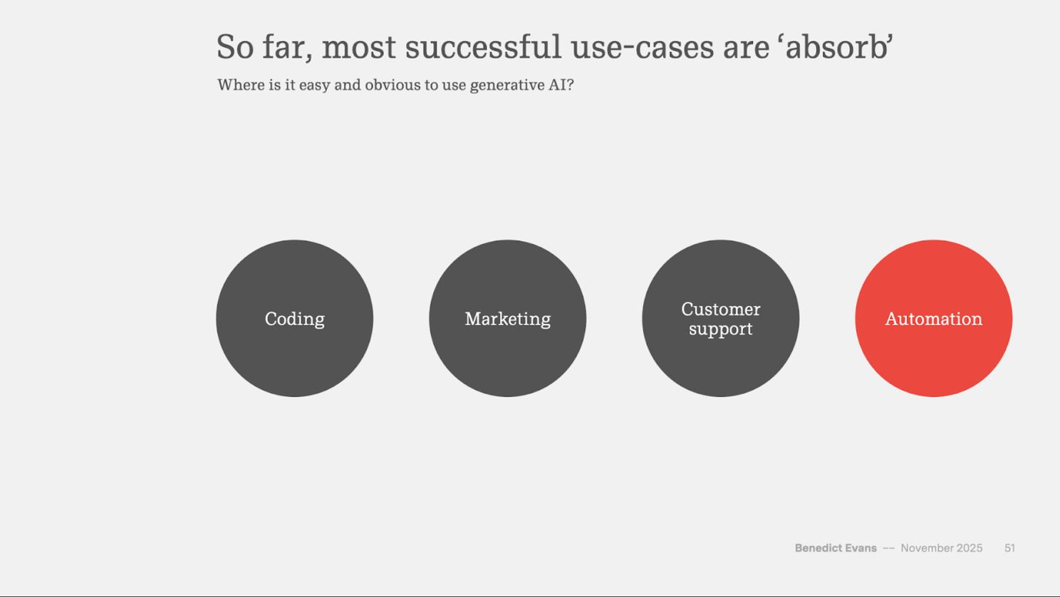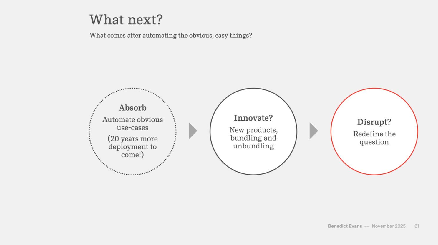Instead of a longer-form written newsletter, I tried to curate a number of "AI eats the world" slides that frame how one can think about answering those questions.