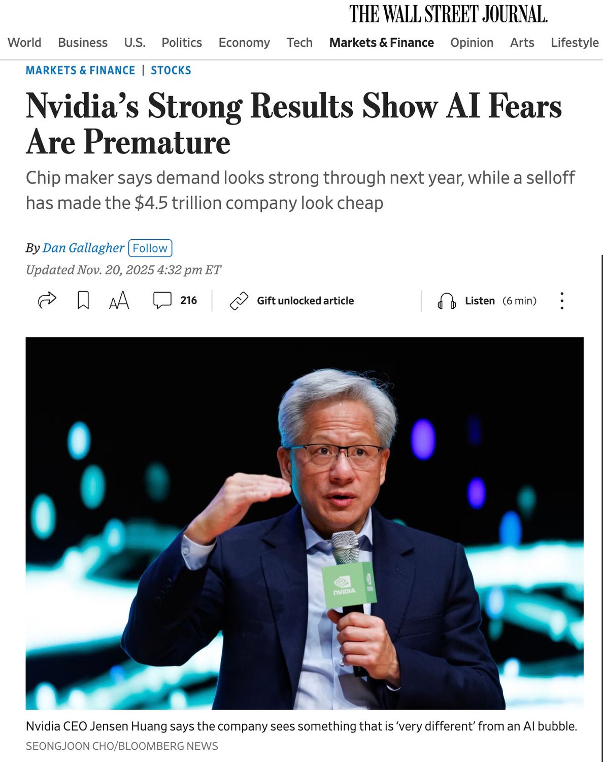 *Comments below via The Wall Street Journal article NVIDIA's "Strong Results Show AI Fears Are Premature"